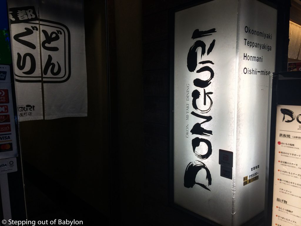 - Also for a okonimiyaki, the Donguri restaurant (located close by the Sanjo Dori bridge) is a good reference. It’s a bit more sophisticated and also more expensive but where you can have a meal for less than 1000 ¥.