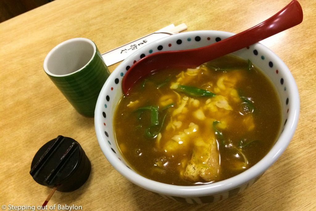 - Okaru also very small, this casual restaurant is located close by the Gion-Shijo station. It’s famous for its curry udon where the noodles come with a very thick and spicy broth; it can be topped with cheese, that is good but isn’t really necessary at it cuts a bit the curry flavors. It costs around 850 ¥ but can be more expensive if you choose a dish with meat or the curry udon with cheese (1150 ¥).